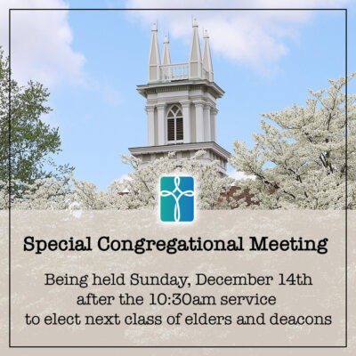 A special meeting of the Congregation and Corporation of the First Presbyterian Church of Yorktown will be held in person and on ZOOM (“hybrid”) on Sunday, December 14, 2025 in the Sanctuary following...