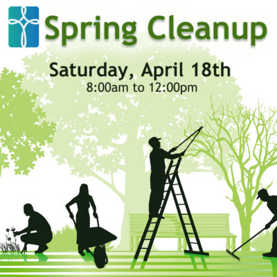 Spring Cleanup—April 18, 8-noon: Join us for our annual Spring Cleanup of the interior as well as the exterior of our campus. Exterior Crew Work on the exterior will include raking out and re-mulching...