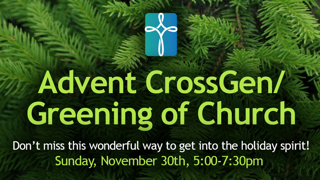 Don’t miss this wonderful way to get into the holiday spirit! Join us on Sunday, November 30, 5:00-7:30 pm for dinner, caroling and decorating the Sanctuary for Advent and Christmas.