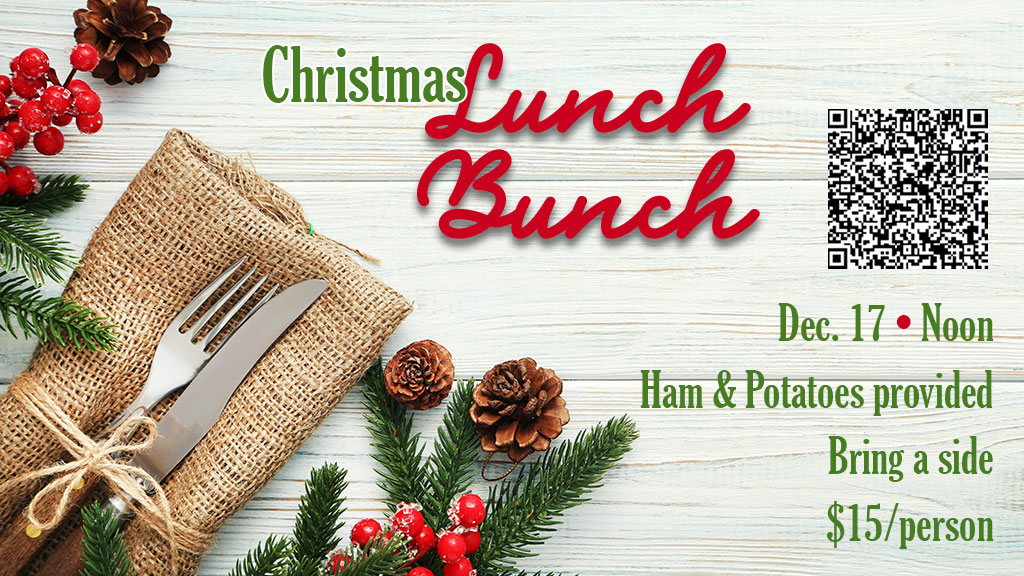 Join us for our Christmas Lunch Bunch on Wednesday December 17 at noon.