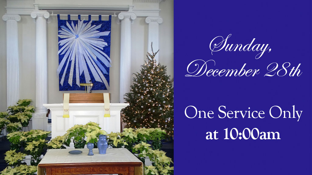 What's Happening Single Service on December 28 12.12.25 On Sunday, December 28, there will be a single service at 10:30am, in person and online.